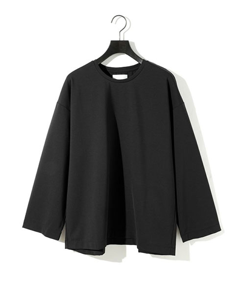 肉感のあるコットンポンチ素材を使用したストレートスリーブワイドプルオーバーです。すべすべの肌触りが特徴的。カットソーだけどきれい目なデザインを表現しており、シンプルに着回しのできるアイテムとなっています。袖幅広めで抜け感があります。ストレッチもきいているので動きやすいのもポイント。インナー使いに役立つ1枚です。Point