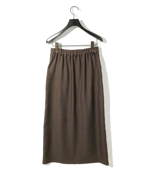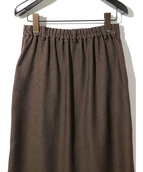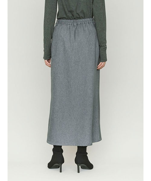 ウエストはベルト使いのできるデザインでバック部分のみゴム使用となっています。タイトなロング丈で女性らしさもありながらかっこよく着用できるスカートを演出します。