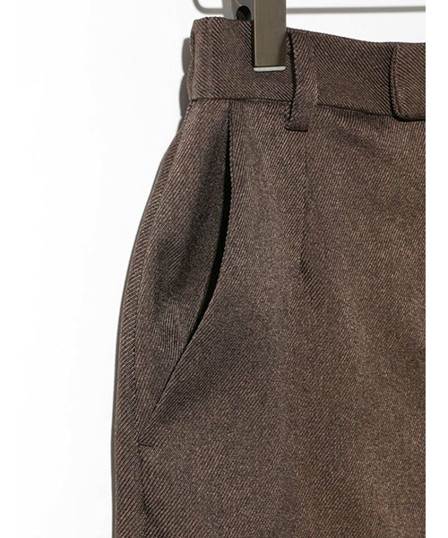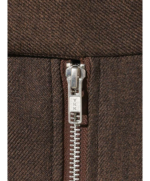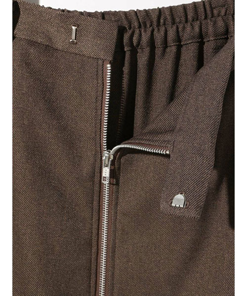 ジャストウエストで穿いてくるぶしが隠れるくらいの丈感です。タイトなシルエットですっきりと着こなせます。ウエスト後ろがゴム&ストレッチが効いていてとても動きやすくWファスナーのフロントで開け方次第で印象変化も可能。ウールライクな素材感できちんと感もあり、カジュアルからきれいめまで幅広く着用できそう。