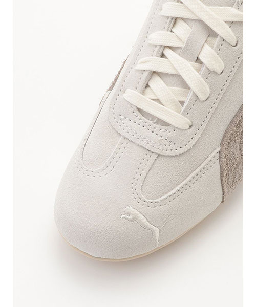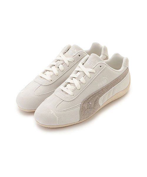 高いグリップ力と優れた屈曲性を備えたラバーアウトソールが、快適なドライビングをサポートする「SPEEDCAT ELEVATED W」。プーマらしさをアピールするブランドアイコンを散りばめたスポーティデザイン。柔らかいスエードを採用した、快適な履き心地も魅力です。※照明の関係により、実際よりも色味が違って見える場合があります。