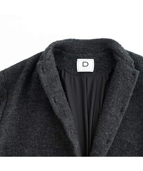 ジャージー生地で作った、D オリジナルのコート。 日常着として、オンオフ問わずシーンに合わせた着こなしが楽しめる1着ができあがりました。
