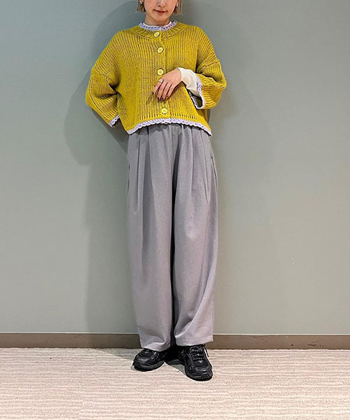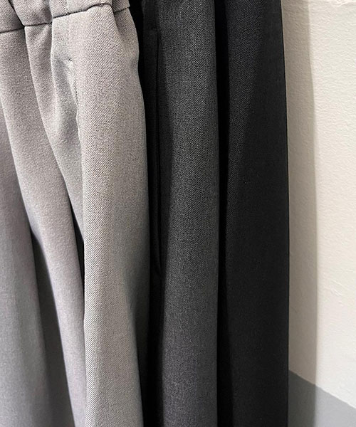 ウールライクでメランジ調の4WAYストレッチツイル生地を使用。柔らかなふくらみとしなやかなドレープ性のある風合いです。