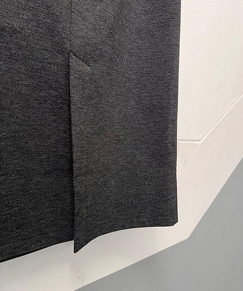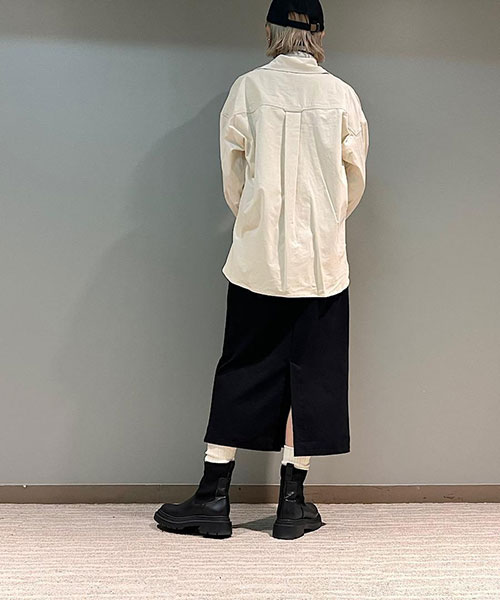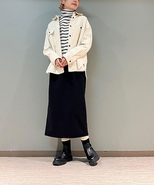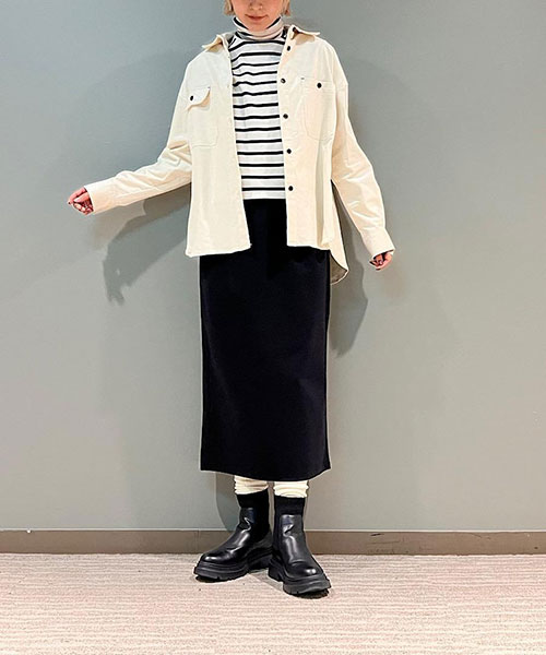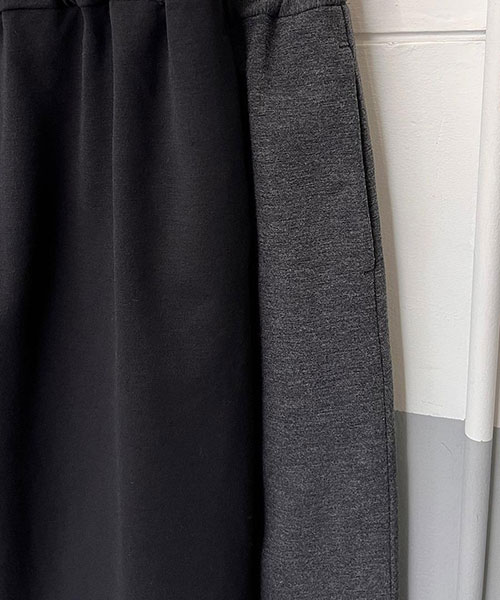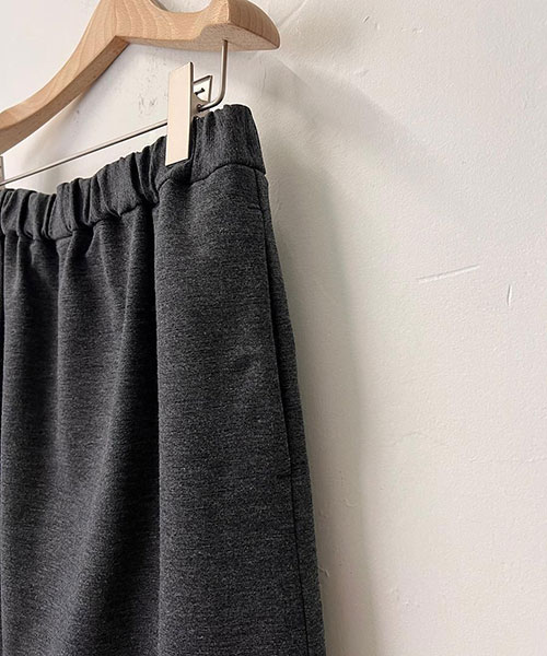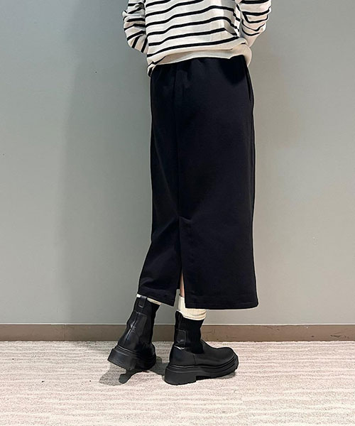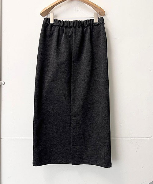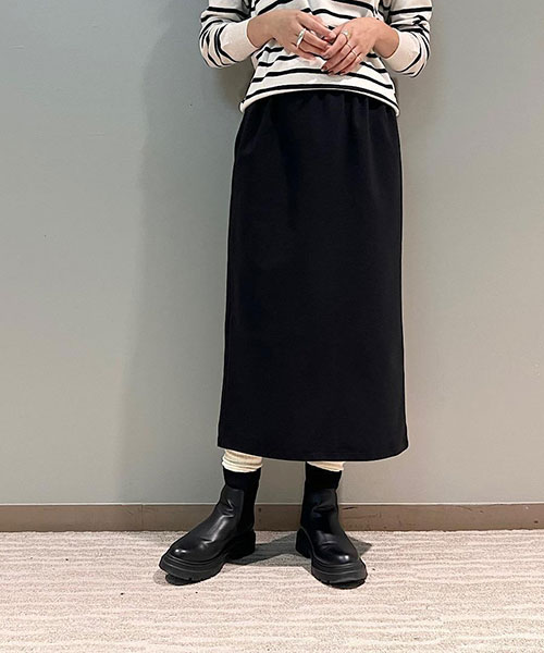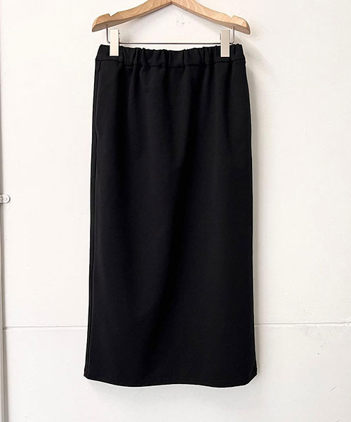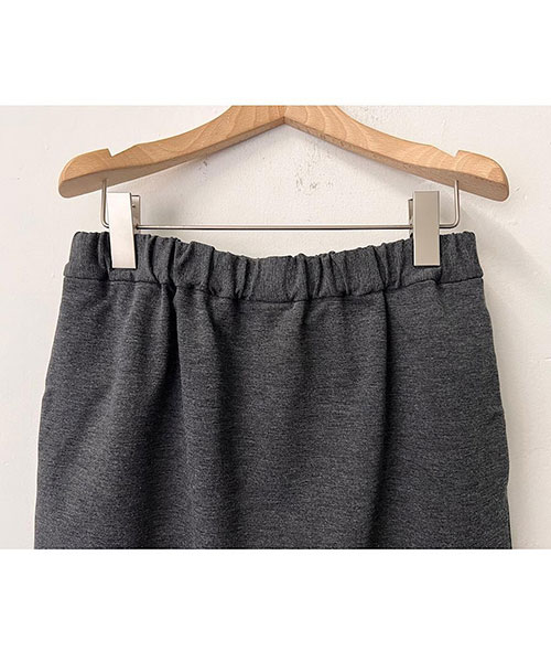 タイトなシルエットながらも、バックスリットが入っているので足さばきも良く、ウエストはゴムなのでストレスフリーな穿き心地です。