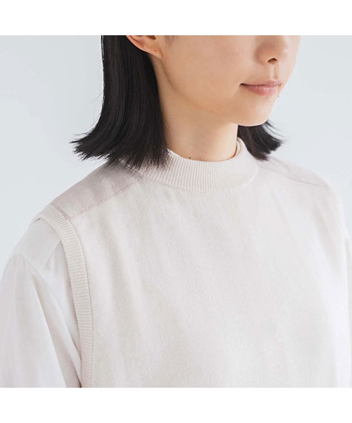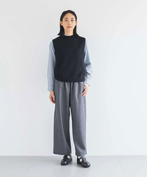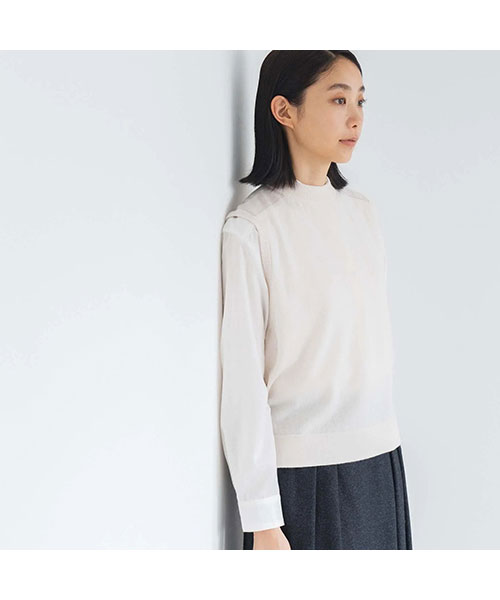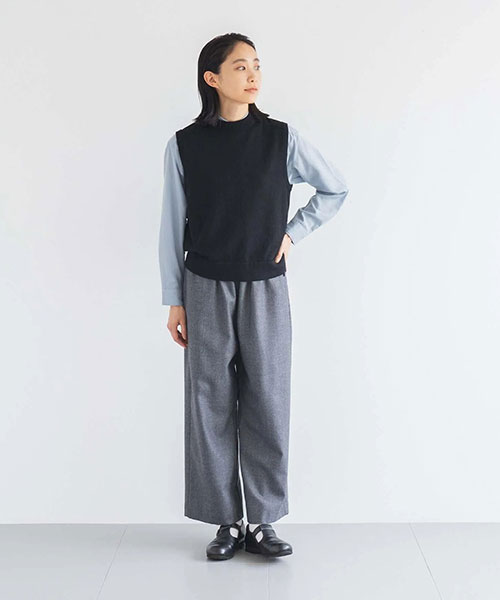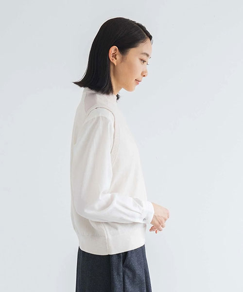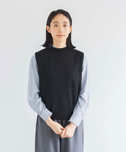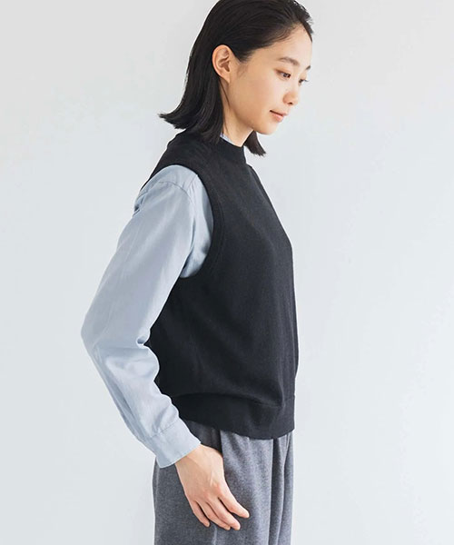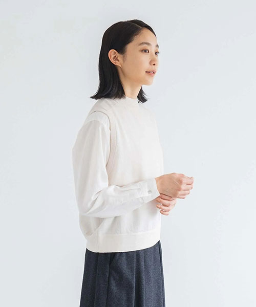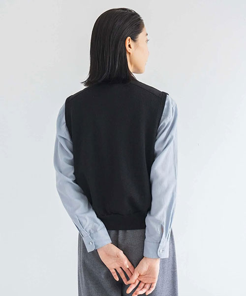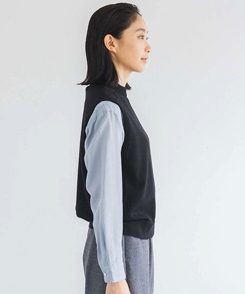 スカートにもパンツスタイルにも、お出かけ着にもオフィス着としても、さまざまな日常のコーディネートに取り入れやすい万能ベストです。