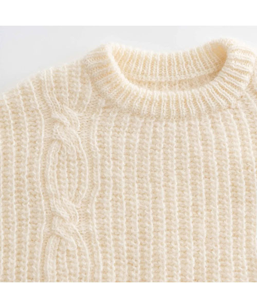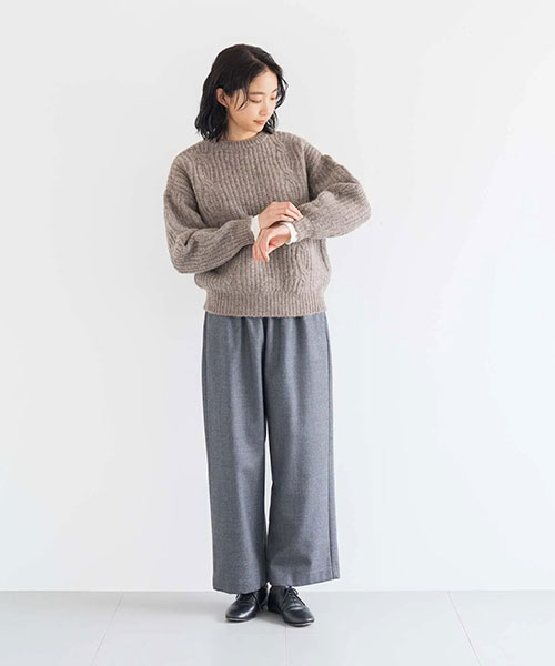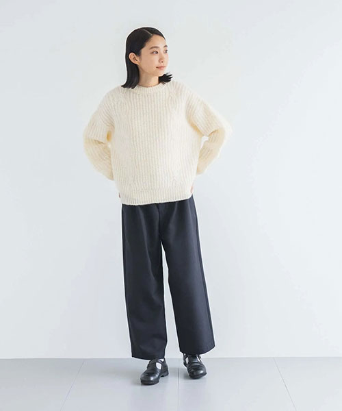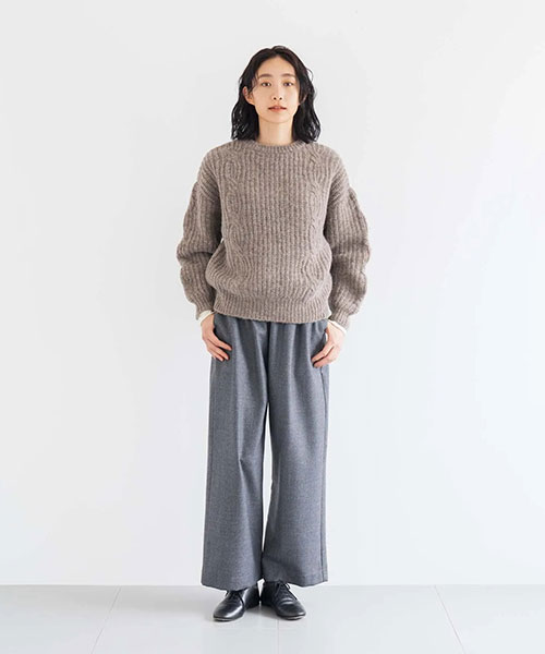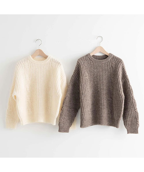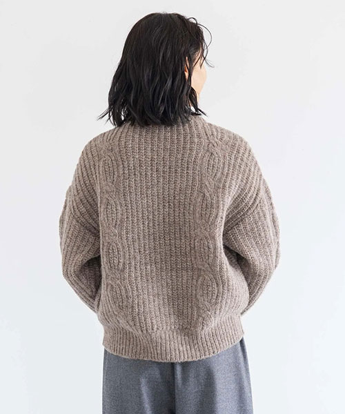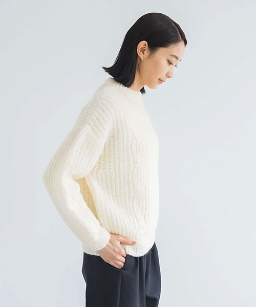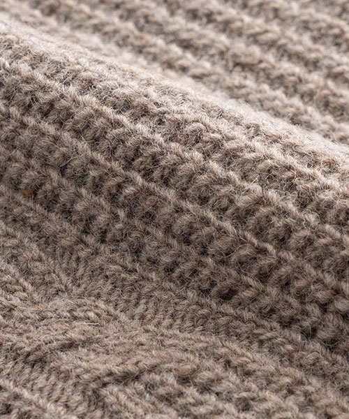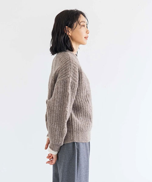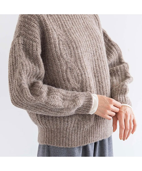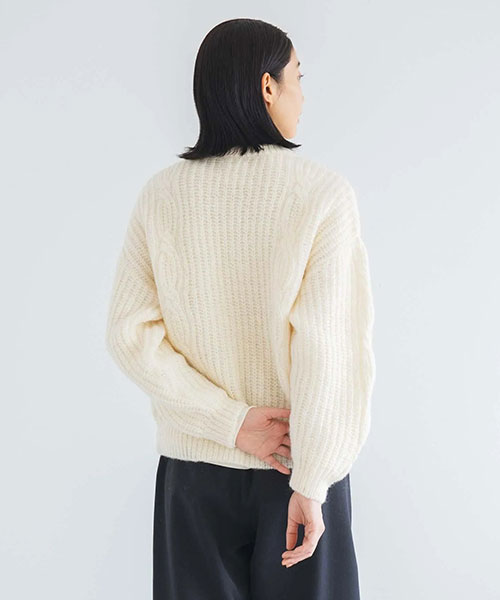 ナチュラルなざっくりとしたウールの素材感と編み柄が特徴の、ほどよいチャンキー感を楽しめるセーター。 真冬に暖かくしてくれる、コーディネートのポイントになるアイテムです。