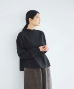 どんなボトムスともコーディネートしやすい、被りタイプのシンプルなブラウスを作りました。見た目はコットンのようでありながらも、落ち感ととろみが特徴のテンセルが混紡された生地を使用。
