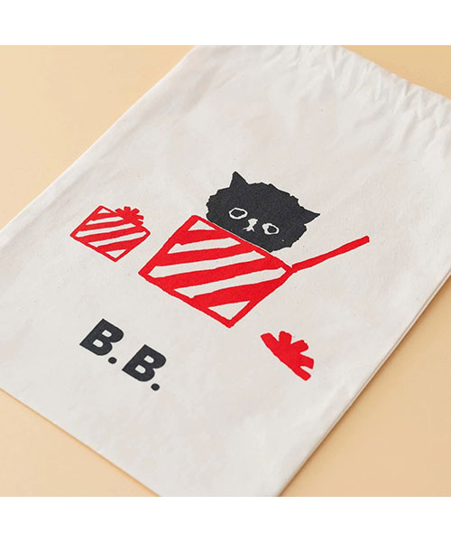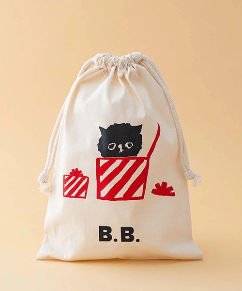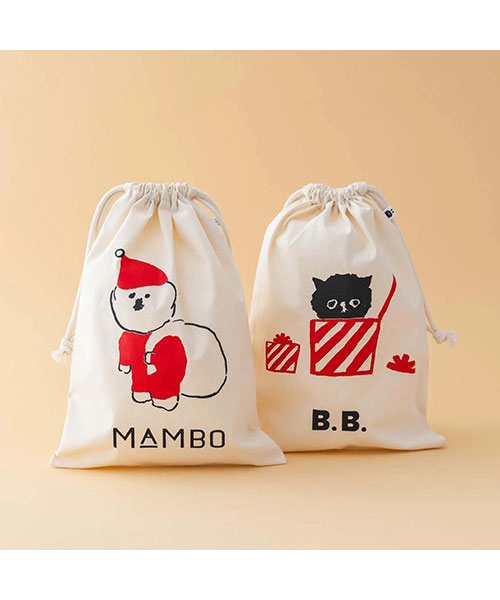 イラストレーターの塩川いづみさんが描くキャラクター B.B(ビー・ビー)。 MAMBO につづく CLASKA オリジナルキャラクターです。そんな B.B.の、クリスマスシーズン限定の巾着ができました。
