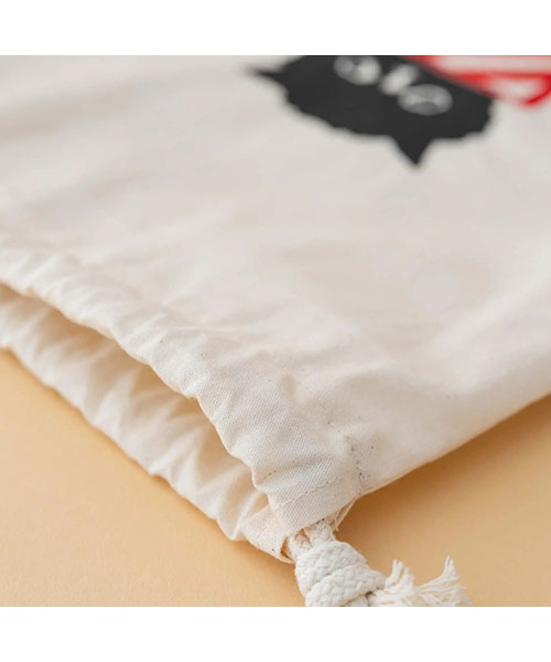A4サイズがすっぽり入る縦36×横26cm。 マチのない、プレーンな形の巾着です。