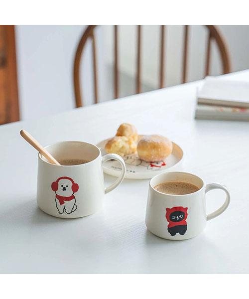 イラストレーター 塩川いづみさんの描く、クラスカオリジナルのキャラクター B.B.。大人気の B.B. の、冬らしいマグカップができました。
