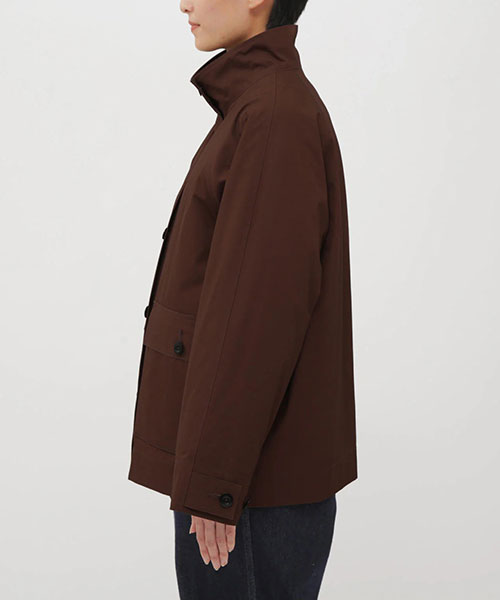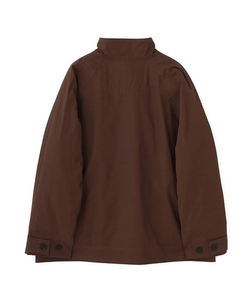高密度に織り上げたペーパーライクなコットン素材を使用したブルゾン。バイオ加工と揉み込み洗いでヴィンテージファブリックのような質感を引き出し、仕上げに撥水加工を施した実用的な素材感が特長。