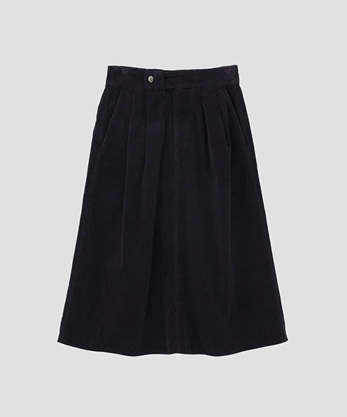 太番手のコットン糸を高密度に織り上げたライトウェイトのコーデュロイスカート。ワッシャー加工とタンブラー加工を重ねることで程よい柔らかさを加え、パイルを立たせて色に奥行きを持たせた、表情の豊かな仕上がり。