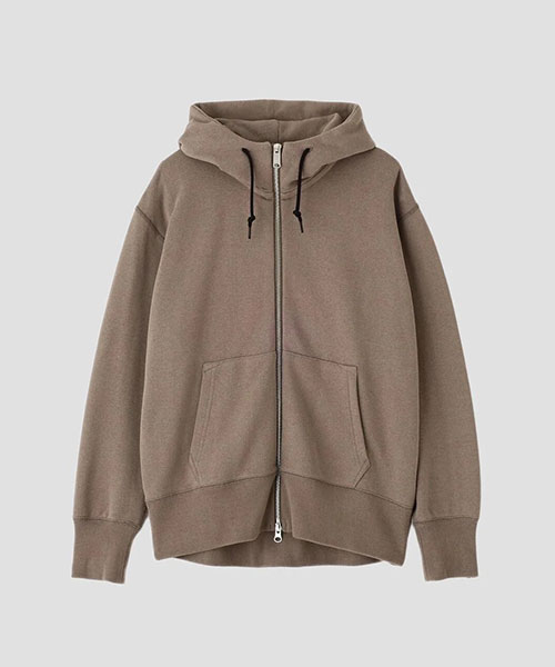 ループウィラーにスペシャルオーダーしたラグランスリーブのフーデットパーカー。吊り編み機でゆっくりと編むことで、しっかりした風合いながらも空気を含んだような柔らかい仕上がり。