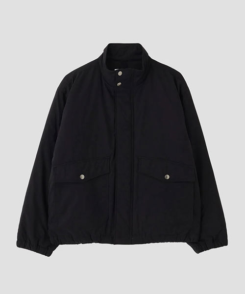オーガニックコットンとリサイクルナイロンを組み合わせたキャンバス素材のブルゾン。微起毛を施し、軽さとウォーム感を加えたヴィンテージライクな味わいが特長。ゆったりとした身幅とスタンドカラーが新鮮な、中綿入りの軽く暖かな着心地。2方向から使える腰ポケットや、袖口と裾のゴムギャザーにドットボタンを合わせたディテールがスポーティな印象。ビスロン仕様の逆開ファスナーを採用し、幅広いスタイリングに対応する一着。