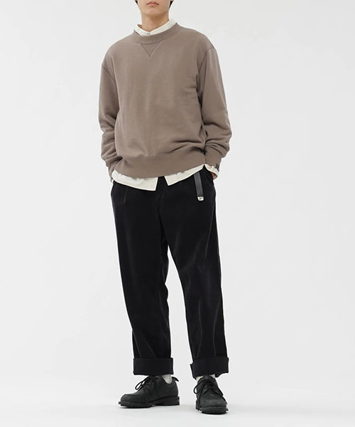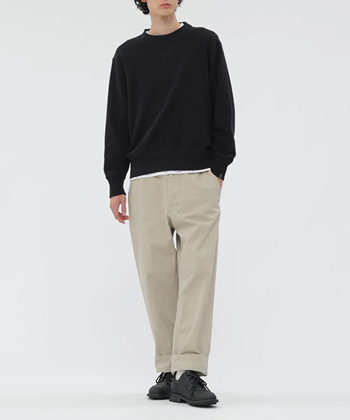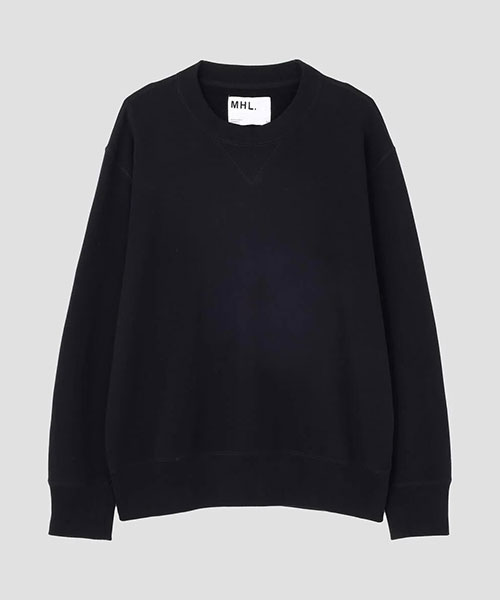 吊り裏毛にこだわり、常に気持ちの良い着心地を追求したアイテム。アイコンディテールでもあるループウィラーのネームは、ブラックベースにホワイトロゴのMHL.スペシャルカラー。