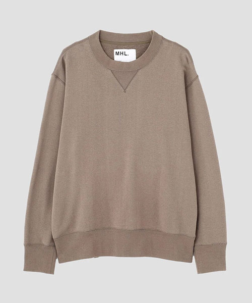 吊り裏毛にこだわり、常に気持ちの良い着心地を追求したアイテム。アイコンディテールでもあるループウィラーのネームは、ブラックベースにホワイトロゴのMHL.スペシャルカラー。