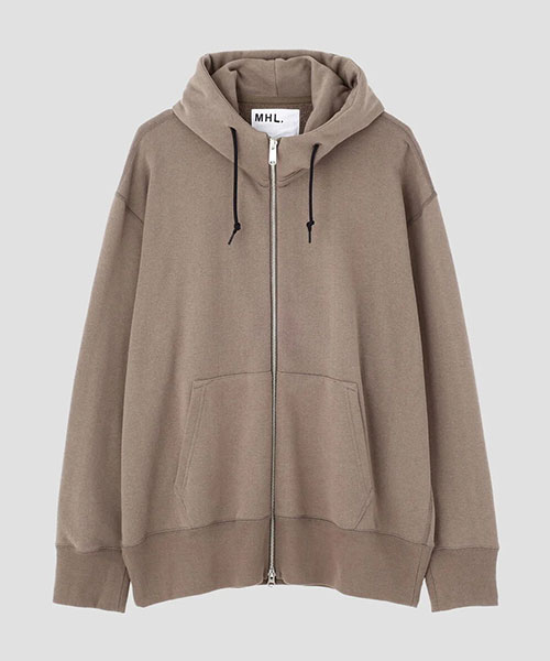 吊り裏毛にこだわり、常に気持ちの良い着心地を追求したアイテム。アイコンディテールでもあるループウィラーのネームは、ブラックベースにホワイトロゴのMHL.スペシャルカラー。