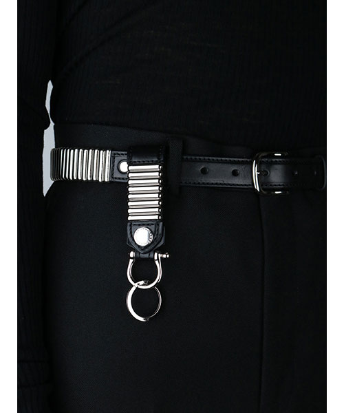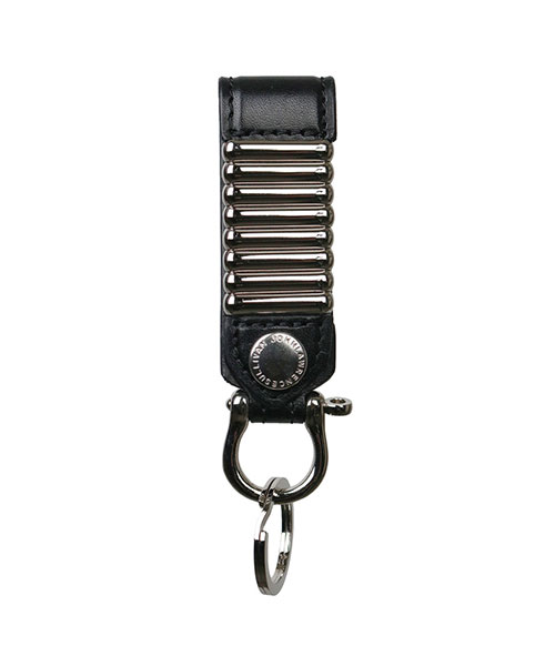 定番アイテムのベルトからデザインが昇華されたキーホルダー。直営店限定品。ブランドロゴの入ったメタルスナップボタンを開閉し、ベルト等へ装着することが可能。