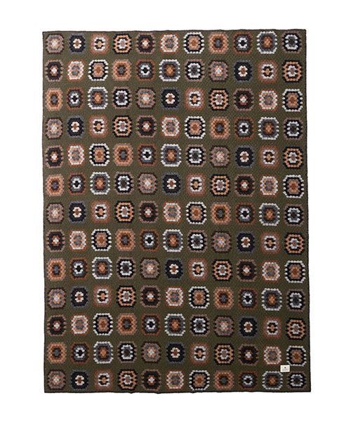 秋冬シーズンのアウトドアシーンから室内でくつろぐ時間まで、ふんわり包まれて暖かい大判サイズのジャカードブランケット鮮やかな色使いの柄が目を引き、防寒具としても活躍する、羽織れる、敷けるマルチな機能性を発揮するブランケット。イタリア カラマイ社製オリジナルニット柄を使用した、軽量かつ暖かいジャカード織物です。ポリエステルの軽量性とウールの保温性・吸湿性を兼ね備えながら、太番手の糸を使用してブランケットにも最適な厚手の肉感を表現しています。