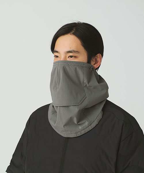 日常使いからウィンタースポーツシーンまで、幅広く使えるフィット感にこだわった万能モデル。ネックォーマーの課題でもあるフィット感を随所で向上させているのがポイント。鼻を覆う部分にはダーツ処理を施し、立体感を出しつつ、形状記憶のワイヤーを内蔵することにより鼻の形状に合わせてフィットさせられる構造に仕上げています。また、後部にはグローブを身につけたままでもワンタッチでフィット感を調整できるアジャスターを備えています。さらに、耳に引っ掛けることができるソフトゴム仕様により、ずり落ちることを防ぎます。ゴーグルやメガネが曇らず、呼吸をしやすくするために、口元はベンチレーション構造を採用しました。様々なウェアに合わせやすい落ち着いたカラーがラインナップ。「Snow Peak」ロゴと「POLARTEC(R)」ロゴのラベルがワンポイントになっています。