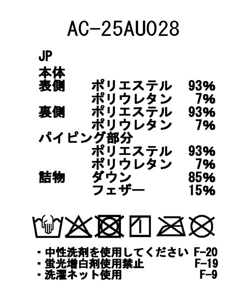 素材 | (BODY)FACE:93% POLYESTER,7% SPANDEX/BACK:93% POLYESTER,7% SPANDEX/PIPING:93% POLYESTER,7% SPANDEX/FILLING:DOWN( |