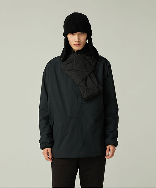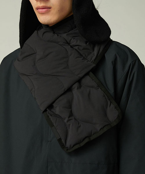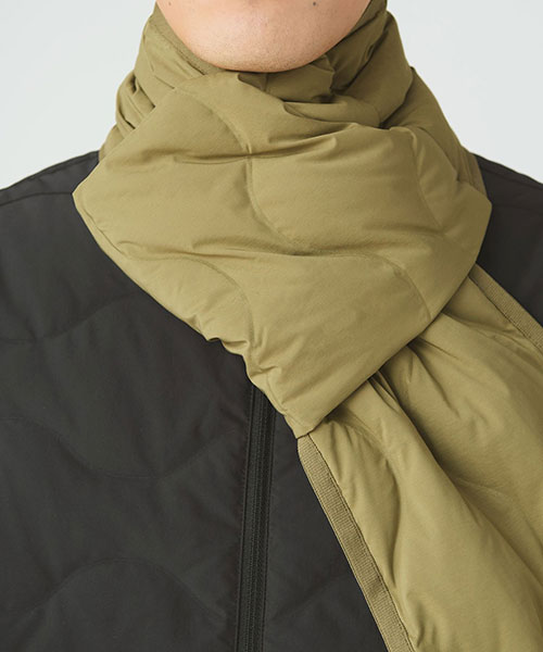 スタイリングのほどよいアクセントとなり、防寒具としても優れるダウンマフラー。アウターのインに仕込んでももたつかないよう、また持ち運びもしやすいよう、コンパクトなサイズで仕上げました。ホール状にした端に、反対側の端を差し込むだけで簡単に装着ができます。