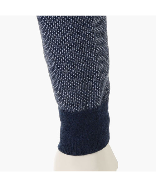 ノスタルジックな雰囲気のバーズアイパターンを配色やグラフィックのアクセントでモダンに仕立てました。手持ちのウエアにプラスするだけでコーデが完成する存在感あるニットは、秋冬のラウンドコーデの主役に最適。