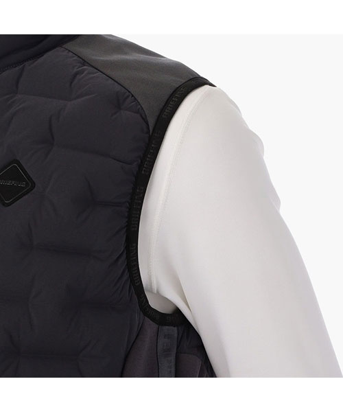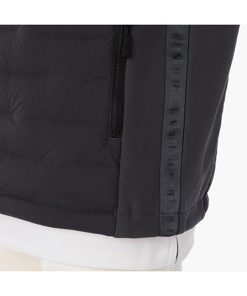 保温性はもちろん都会的なゴルフスタイルを演出するスマートなシルエットにもこだわったダウンベストは、冬のレイヤードコーデに欠かせない1着。保温性とスイング等を妨げないシルエットや、抜群の着心地はもちろん、ロゴテープを各所に配置し、アイコニックなルックスに仕立てました。