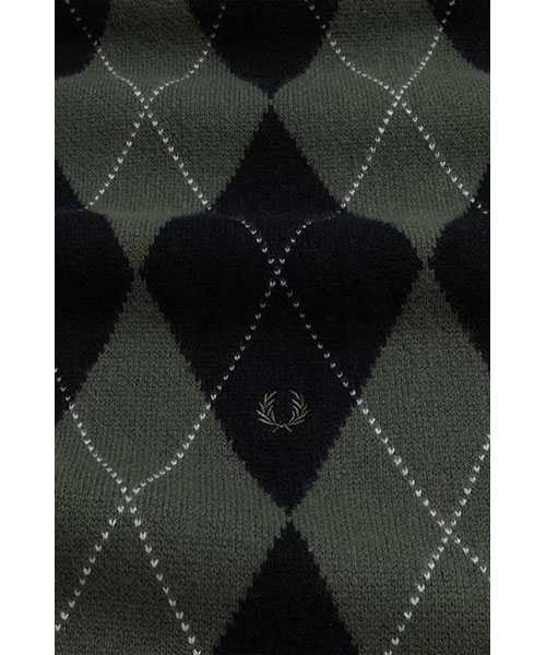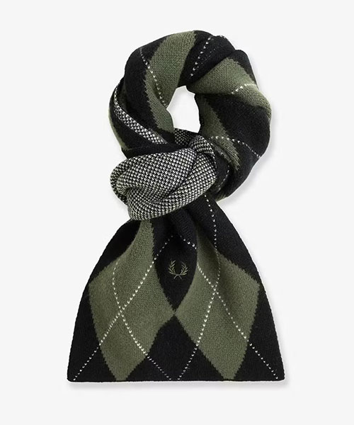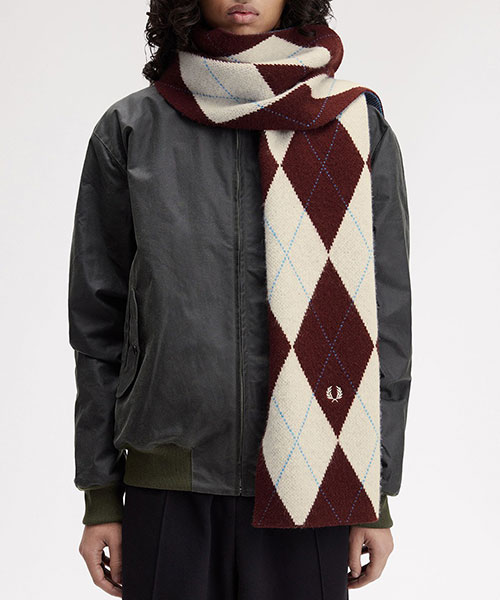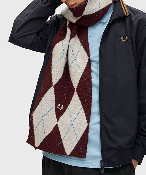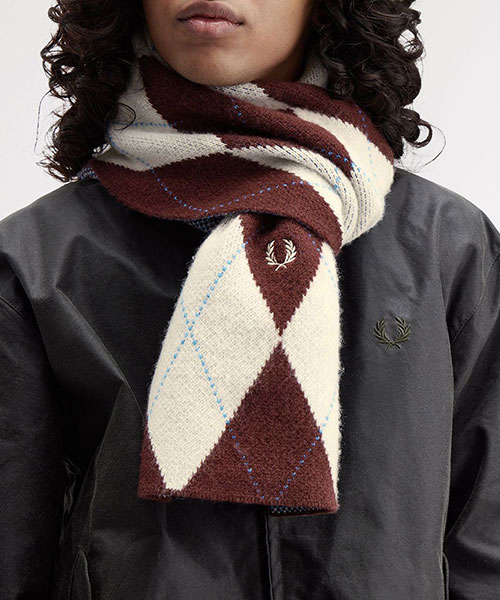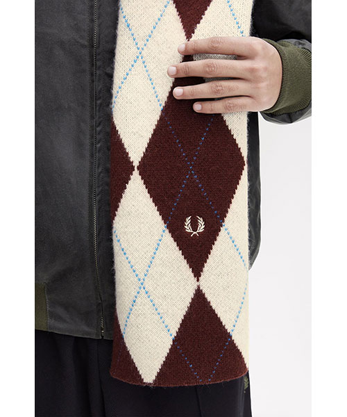 メリノウールを使用したニットマフラー。アーガイルとローレルリースの刺繍がデザインポイントになっています。BRAND CONCEPT