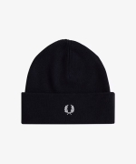 メリノウールをブレンドした、ニットビーニー。 ニット帽のターンアップ部分はローレルリースの刺繍でデザインし仕上げています。BRAND CONCEPT