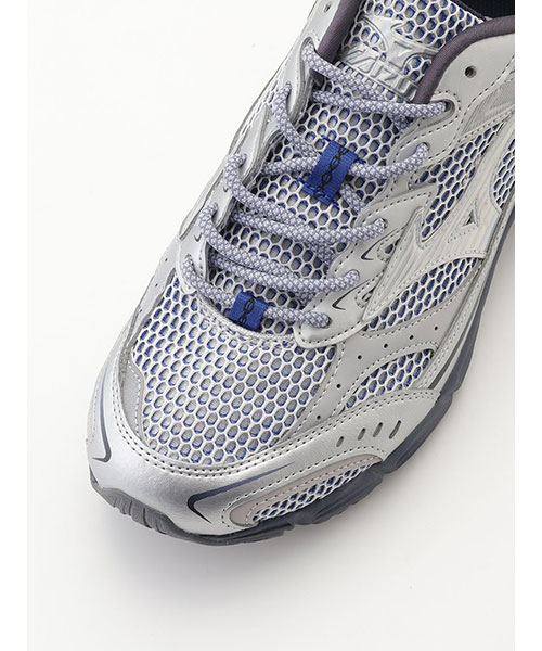 「MXR」をベースに宇宙へのあこがれとその境界線からインスピレーションを得た「SPACE PACK」。2000年代の象徴的スタイルである目の大きなメッシュとシンセティックの組み合わせが魅力的。シルバーを基調に、神秘的なホログラムパーツがあしらわれています。※照明の関係により、実際よりも色味が違って見える場合があります。