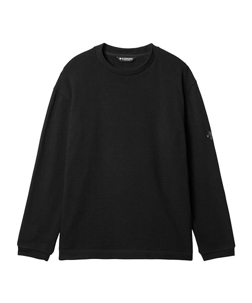 凹凸感のある肉厚素材の裏面を特殊な加工によりベロアのように起毛させ、肌当たりの良さと保温性を向上させた生地を使用したクルーネックプルオーバー。ややゆとりのあるシルエットで、アウトドアからデイリーユースまで幅広い環境で活躍。