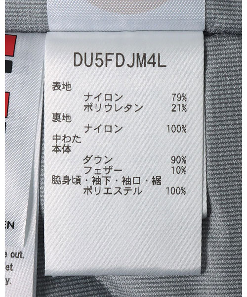 | 素材 | 表地:ナイロン79%、ポリウレタン21% 裏地:ナイロン100% 中わた 本体:ダウン90%、フェザー10% 脇身頃・袖下・袖口・裾:ポリエステル100% |