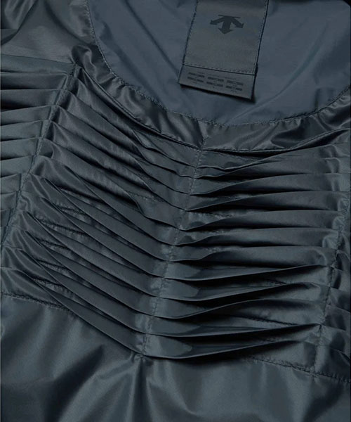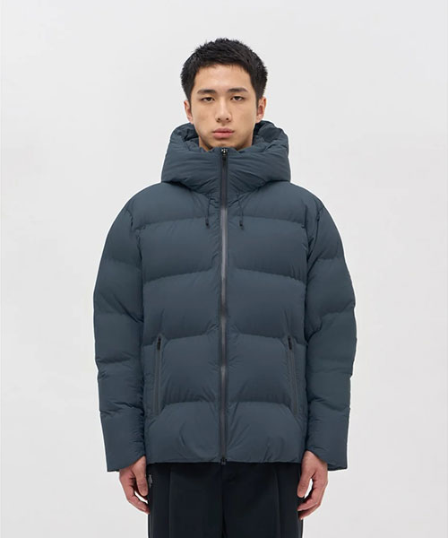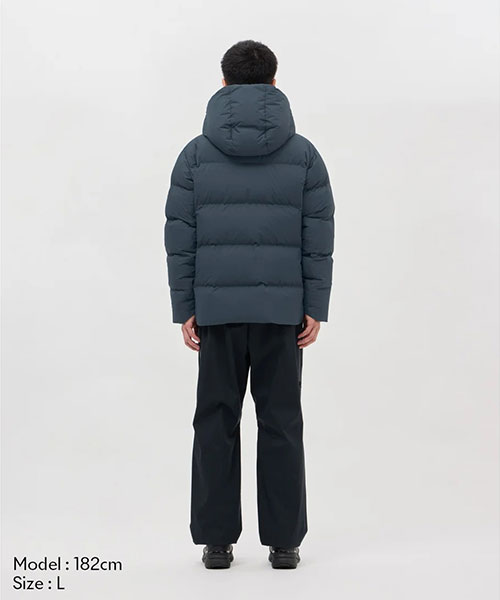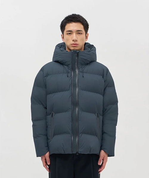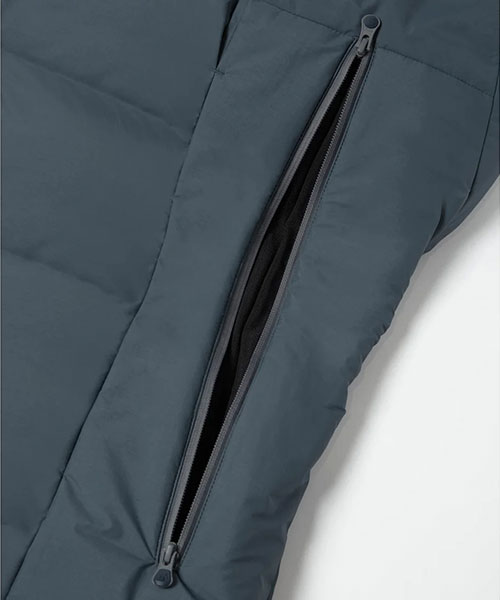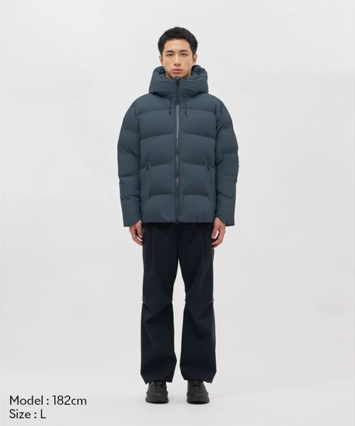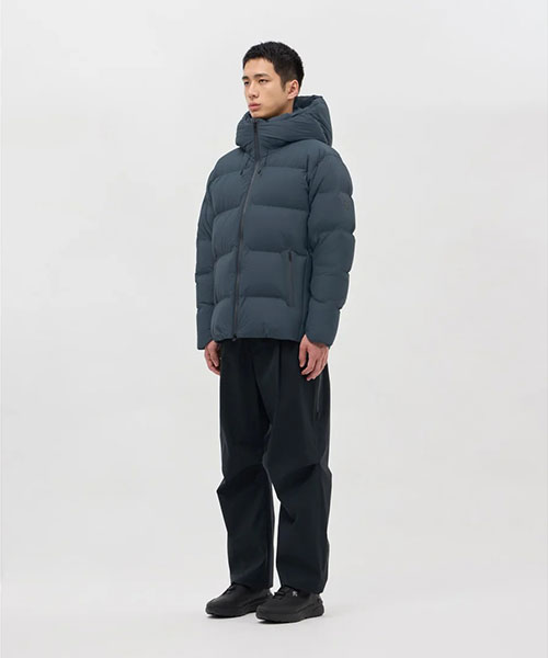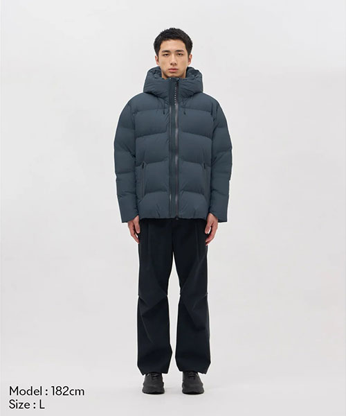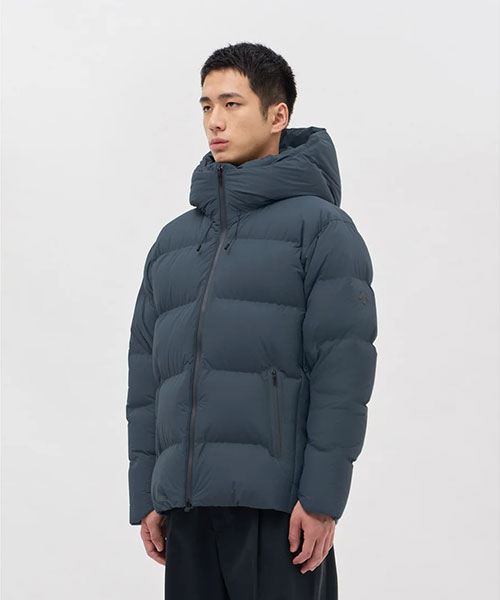 水沢ダウンジャケットの2024年最上位モデル「バーテックス」のデザインをアップデート。表地には非常に軽量ながら耐久はっ水性に秀でたDERMIZAX® 30d NYLON TAFFETAを採用。さらに随一の軽量性と嵩高性を発揮する1000FPのダウンを充填し、空気をまとうかのような着心地とこれまでにない暖かさを実現。従来モデルと比較して10%の軽量化を実現しながら保温性も向上。保温性向上を目的として、HEAT NAVI®/ヒートナビ裏地にプリーツ加工を追加することで、光を熱へと変換し保温性能を発揮する素材の使用面積を増やし、その効果を促進。フロントジッパー部分に採用されたデュアルジップベンチレーションは、2列のジッパーとその間に配置されたメッシュ生地により衣服内に外気を取り込み、ジャケット内にこもりやすい不快な熱や湿気を逃がすことが可能。熱接着ノンキルト加工とシームテープ加工による高い耐水性に加えて、さらなる機能性進化を遂げたハイパフォーマンスモデル。また、この1000FPのダウンも「DOWNPASS」認証を取得したトレーサブルダウンを使用しシリアルナンバーによる厳正な管理を行うことで全ての羽毛の調達過程を追跡することが可能。