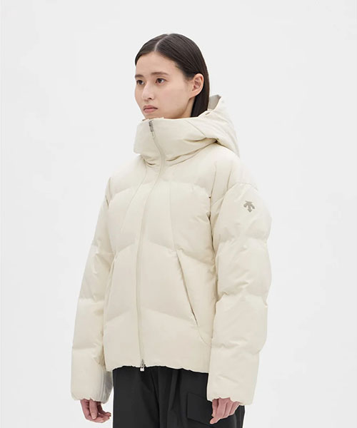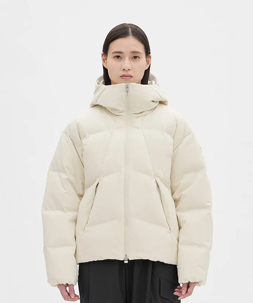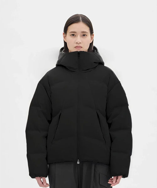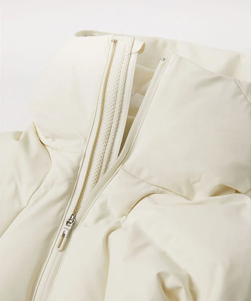 水沢ダウンジャケットの2025年の新モデル「SHUTTLE-L」。着丈をショートレングスに設定し、ミニマルでスポーティなデザインとシルエットが特徴的なモデル。熱接着ノンキルト加工とシームテープ加工により水分含浸を防ぎ、高い耐水性を実現し、裏地には光を熱へと変換し積極的な保温性能を発揮するHEAT NAVI®/ヒートナビを採用。前身頃の切り替え線上に防水ファスナーポケットを配置。また、フロントジッパー部分に採用されたデュアルジップベンチレーションは、2列のジッパーとその間に配置されたメッシュ生地により衣服内に外気を取り込み、ジャケット内にこもりやすい不快な熱や湿気を逃がすことが可能。さらに「DOWNPASS」認証を取得したトレーサブルダウンを使用しシリアルナンバーによる厳正な管理を行うことで全ての羽毛の調達過程を追跡することが可能。
