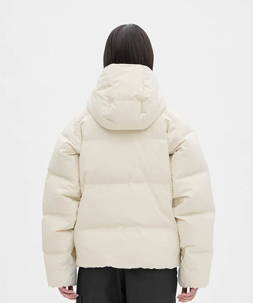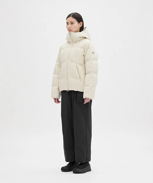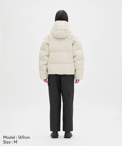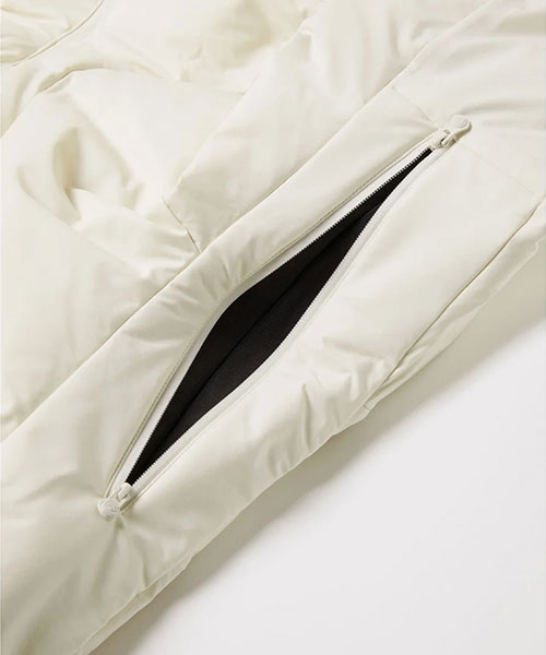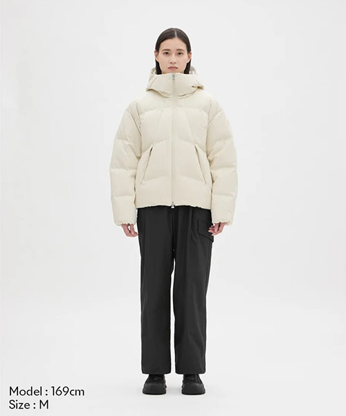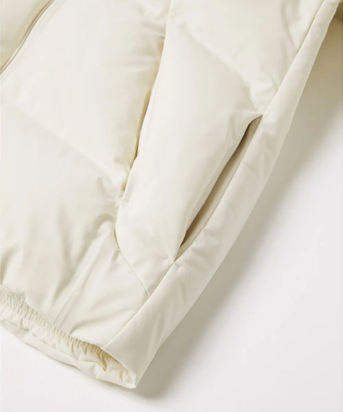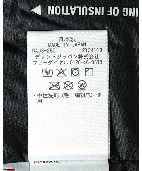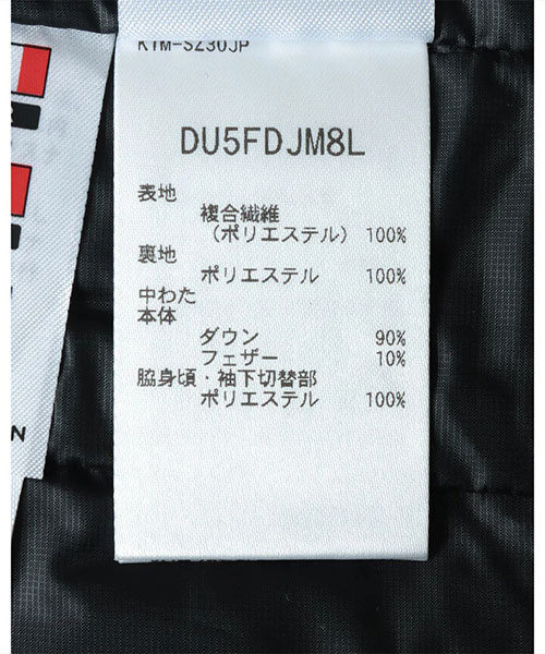 | 素材 | 表地:複合繊維(ポリエステル)100% 裏地:ポリエステル100% 中わた 本体:ダウン90%、フェザー10% フード口・脇身頃・袖下切替部:ポリエステル100% |