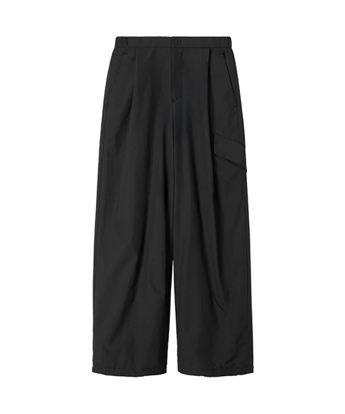 フロントにタックを入れ、わたりにゆとりのあるシルエットが特徴的。