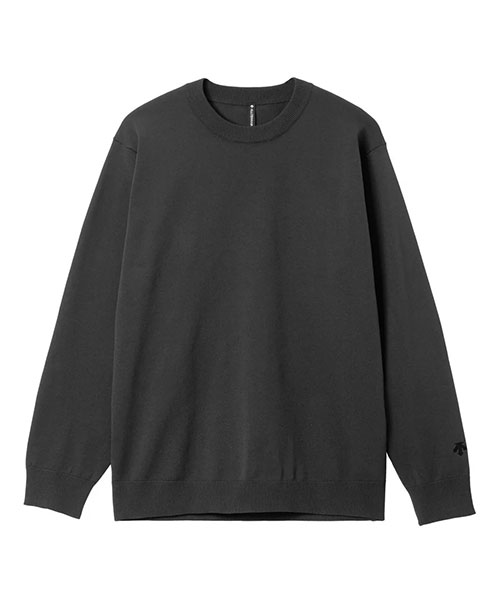 ほどよいハリ感とストレッチ性のあるニットセーター。抗菌性を付与した糸を編み立てた少しゆったりとしたシルエットと、家庭洗濯が可能なイージーケアが特徴的。