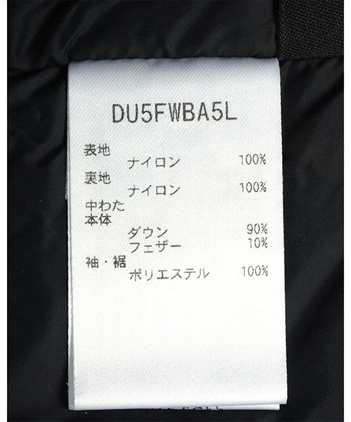 | 素材 | 表地:ナイロン100% 裏地:ナイロン100% 中わた:本体 ダウン90%・フェザー10%/袖・裾:ポリエステル100% |