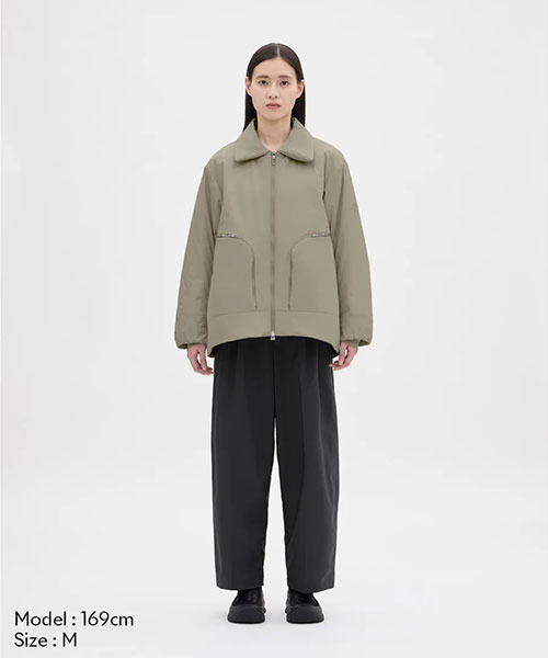 裾のドローストリングを絞って丸みを持たせるなど、スタイリングに合わせてシルエットの調整が可能。