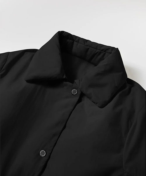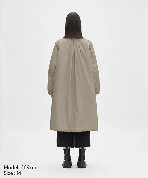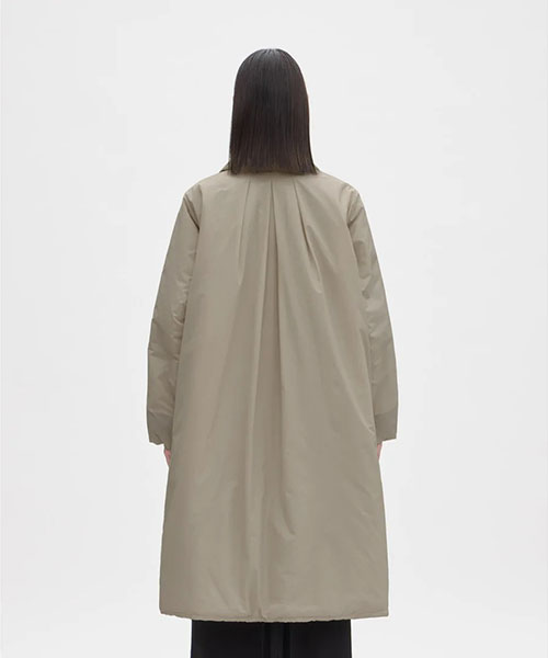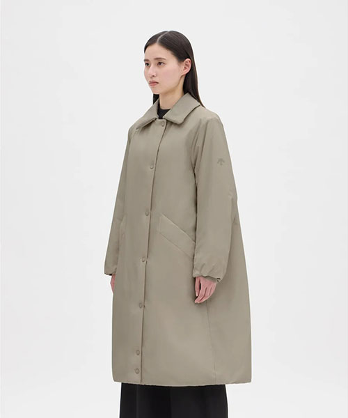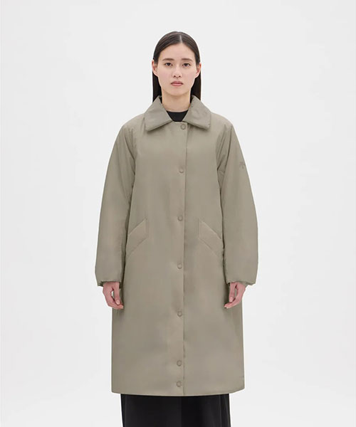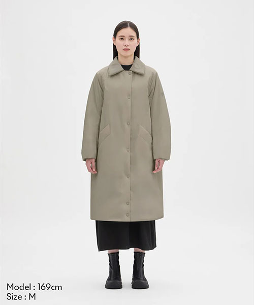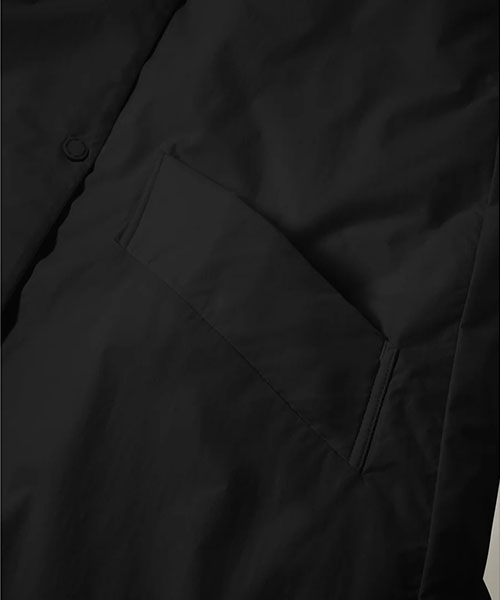 優れたはっ水性をもつ表地を採用した軽量パフコート。中綿には、HEAT NAVI/ヒートナビ中綿を採用。