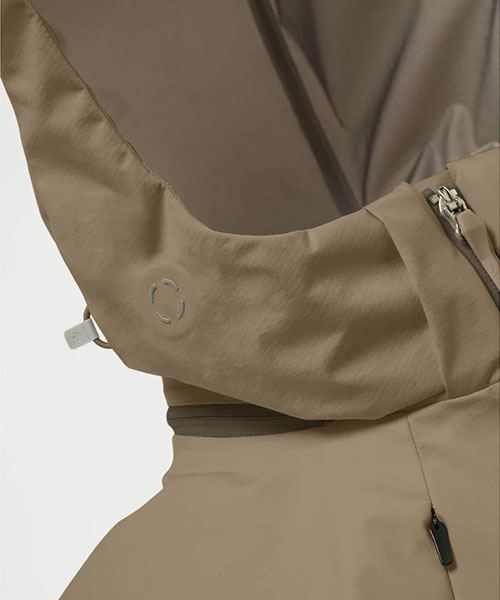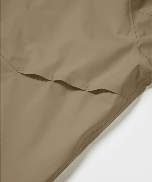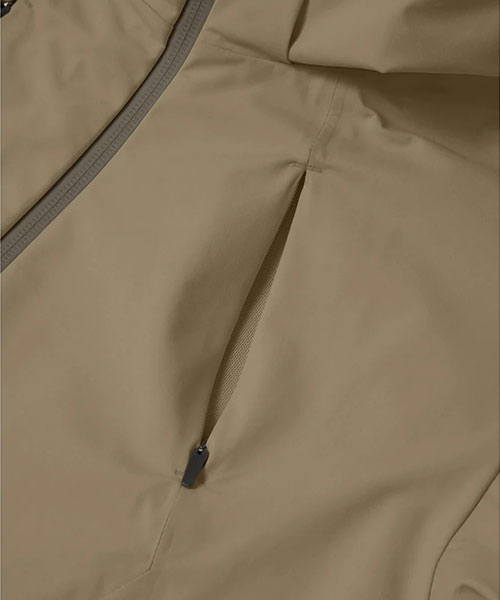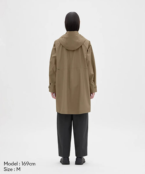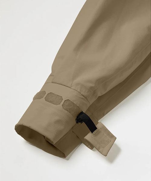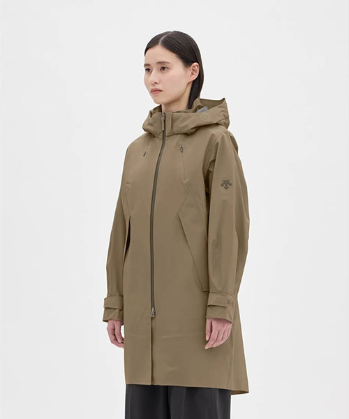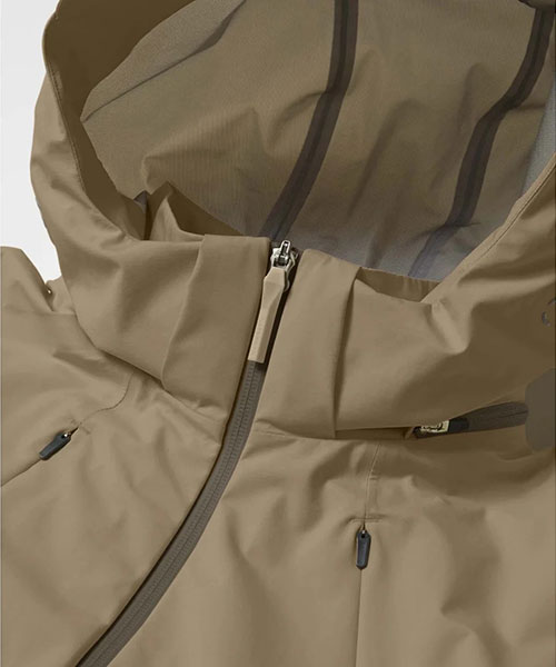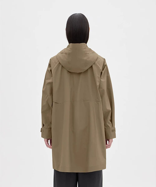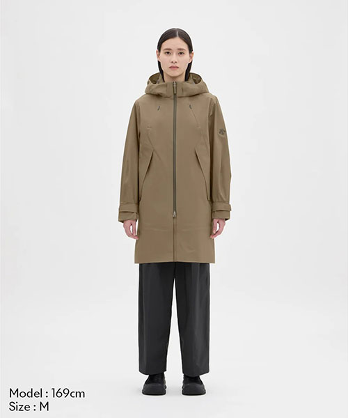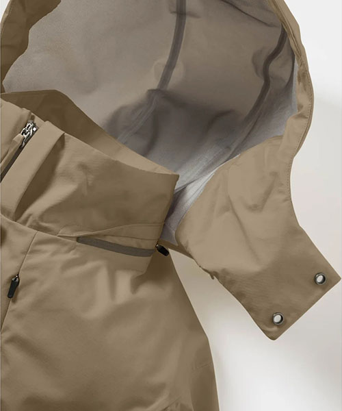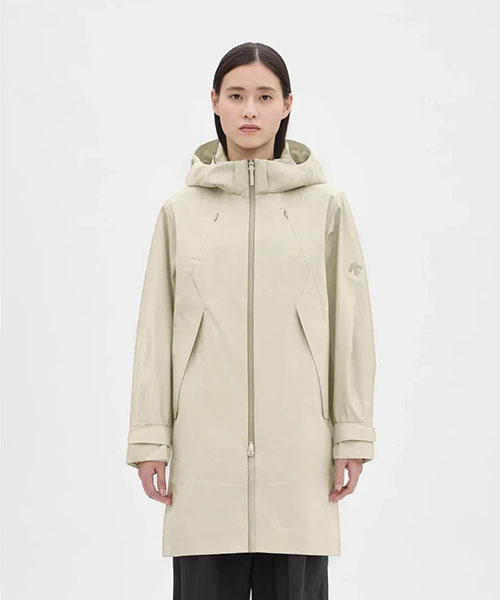 表地はDermizax素材、耐水性と透湿性を追求。袖のボリューム感と身頃のゆったりとしたバランスに拘って仕上げたデザイン。スカートなどの女性らしいアイテムに合わせた着こなしもおすすめ。また、フードにはCohaesiveコードロックシステムを備え、迅速かつ容易にフィット感を調節することが可能。