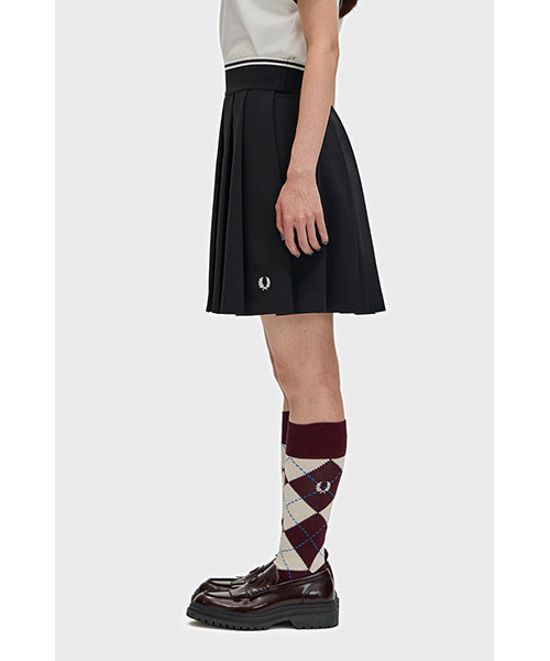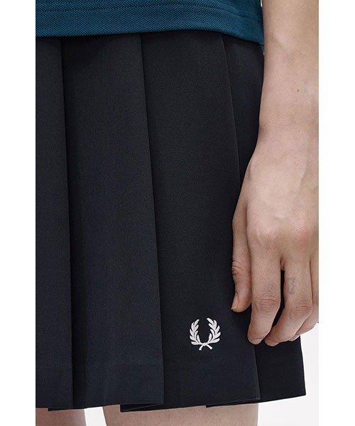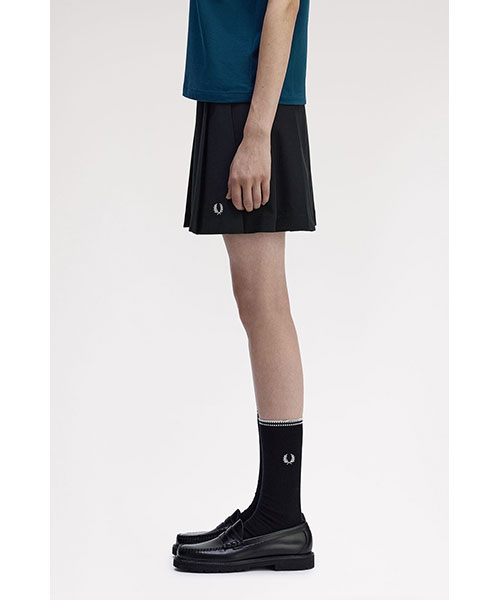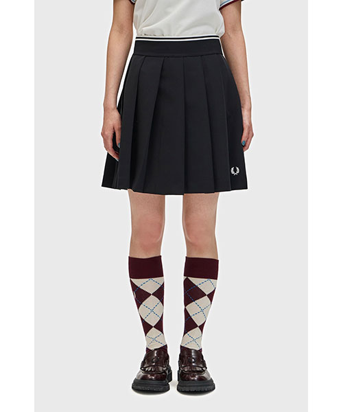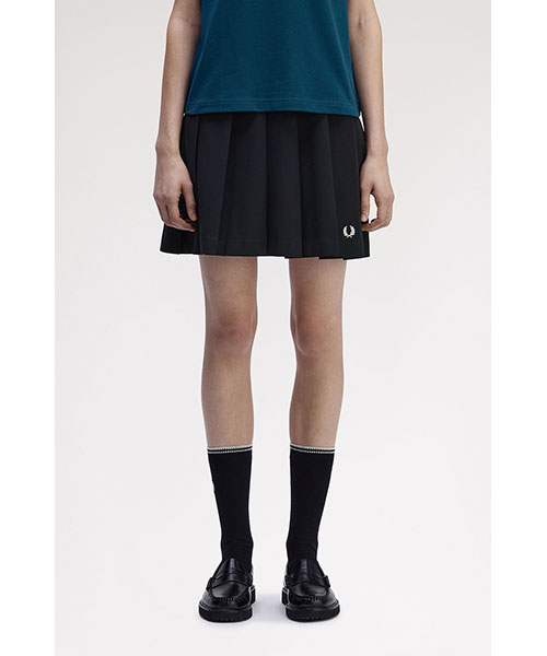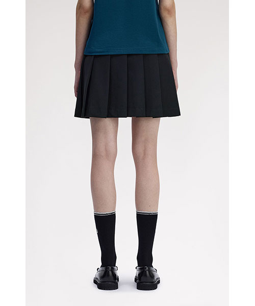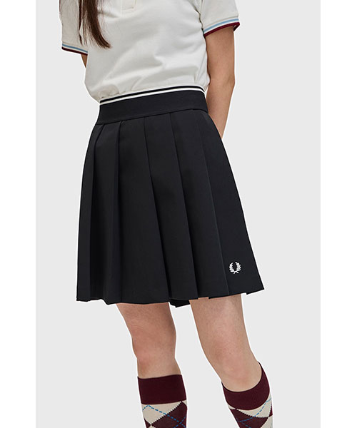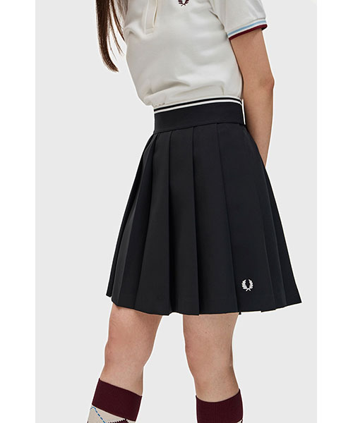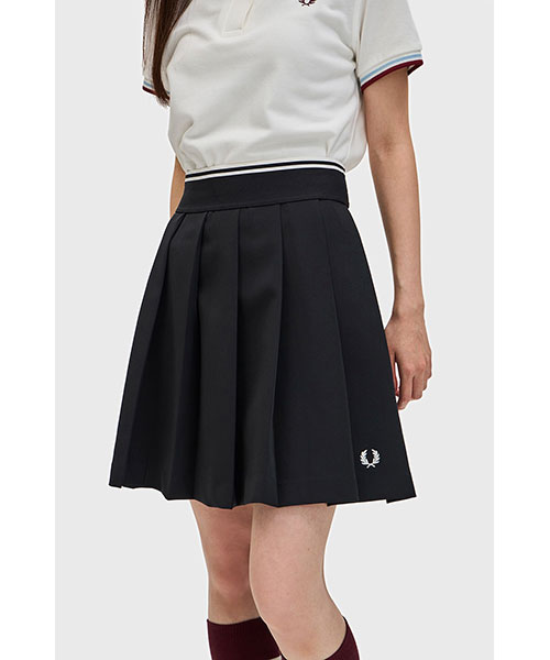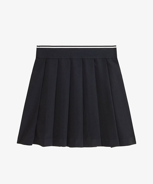 やや光沢のある生地を使用したひざ上丈のプリーツスカート。フロントにプリーツ加工とウエストにティップラインを施したミニスカートです。BRAND CONCEPT