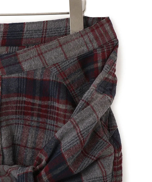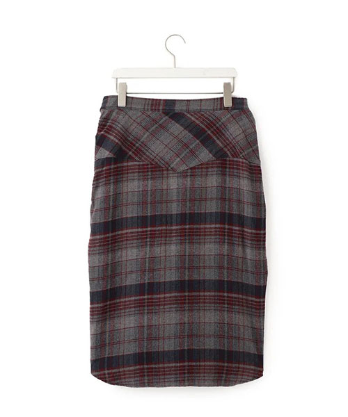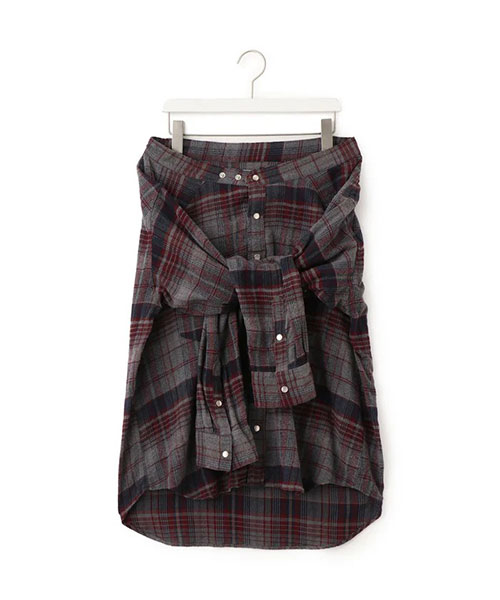 まるでウエスタンシャツを腰に巻きつけたような、遊び心とひねりの効いたデザインスカート。