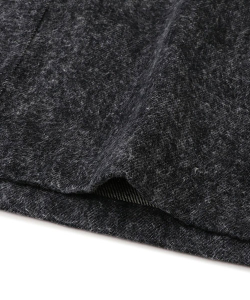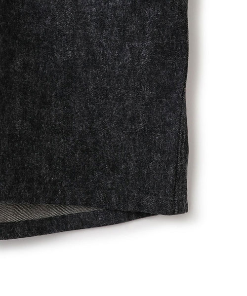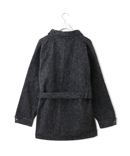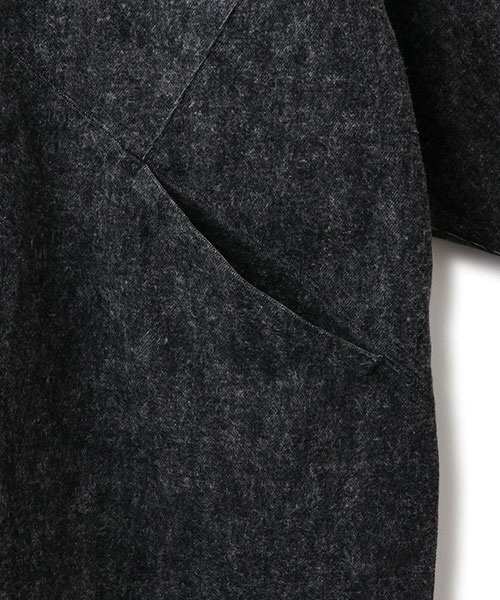 13オンスのブラックデニムに起毛加工を施し、グレーがかった表情へと仕上げたオーバーサイズコート。
