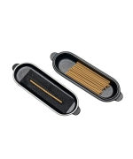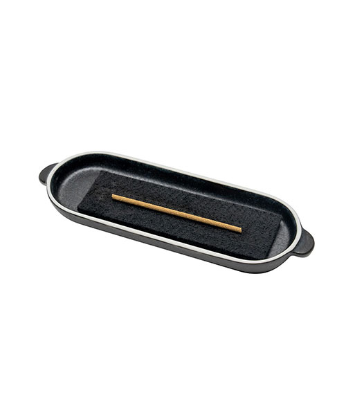 仕様 | インセンスケース/陶器(圧力鋳込み成形)、黒色釉薬、不燃マット/耐炎化ポリアクリロニトリル繊維、結束用ベルト/ポリプロピレン サイズ/147×47×36(h)mm |