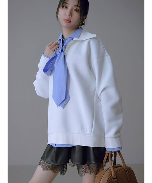 着るだけでトレンド感あるバランスが作れる、ハーフジップのプルオーバーです。