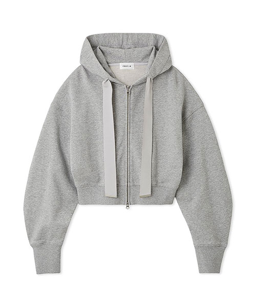 すっきりとしたコンパクトなボディに、ボリュームスリーブのシルエットが今季らしいジップアップフーディー。
