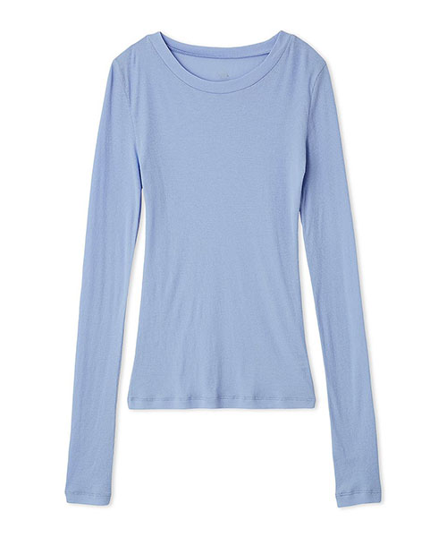 コットン100%の、程よくシアーなリブニット地で仕立てた、シンプルな形の長袖カットソーです。