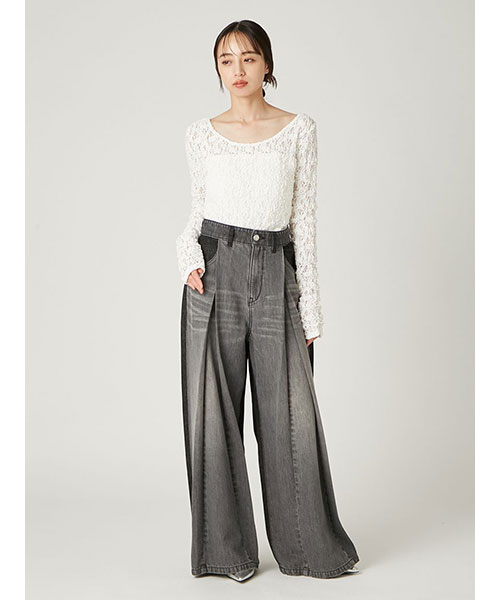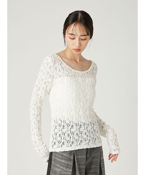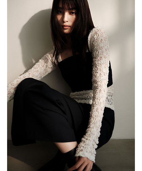 【ストレッチレースの透け感が華やかなプルオーバー。前後で着回せる2wayデザイン】【Design/Styling】