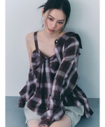 【大人気のリボンキャミが、オリジナル素材のラメ入りオンブレチェックでトレンド感アップ】【Design/Styling】